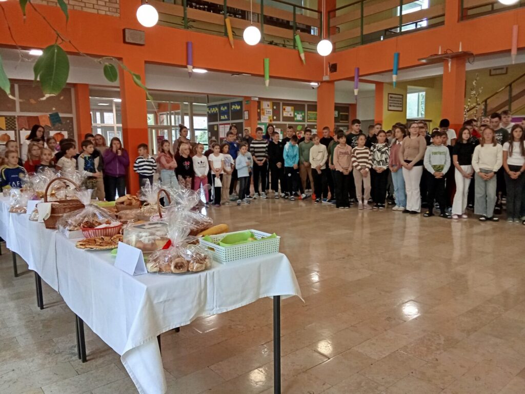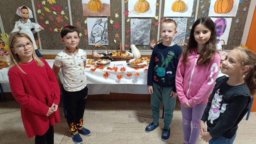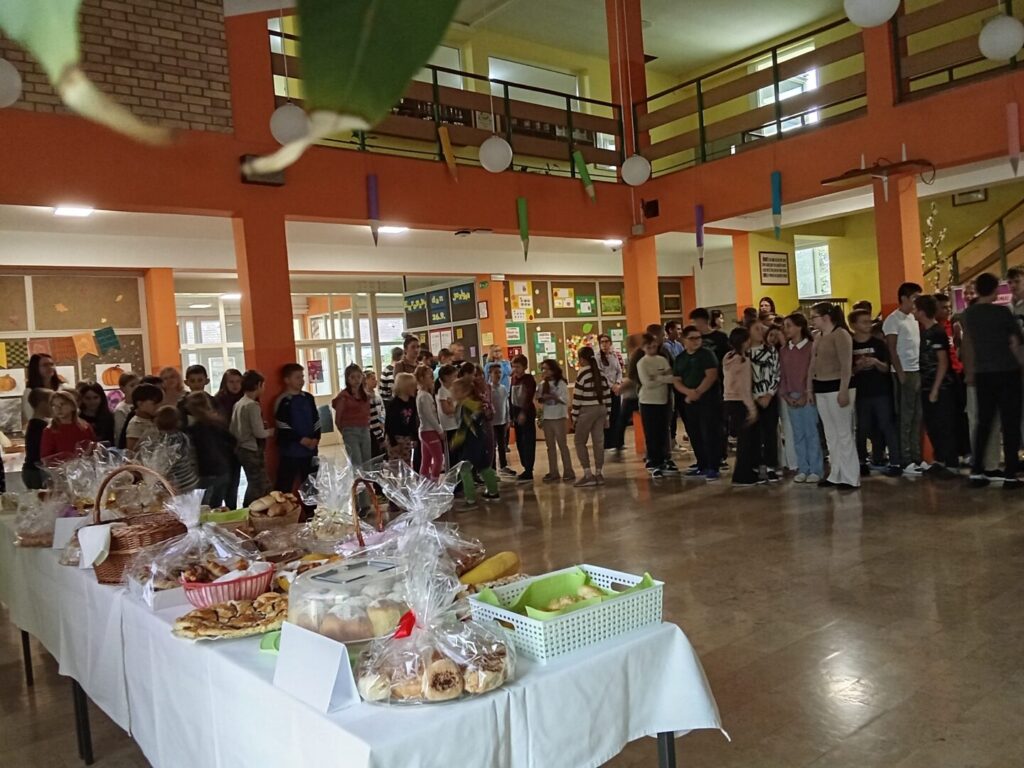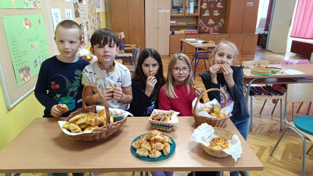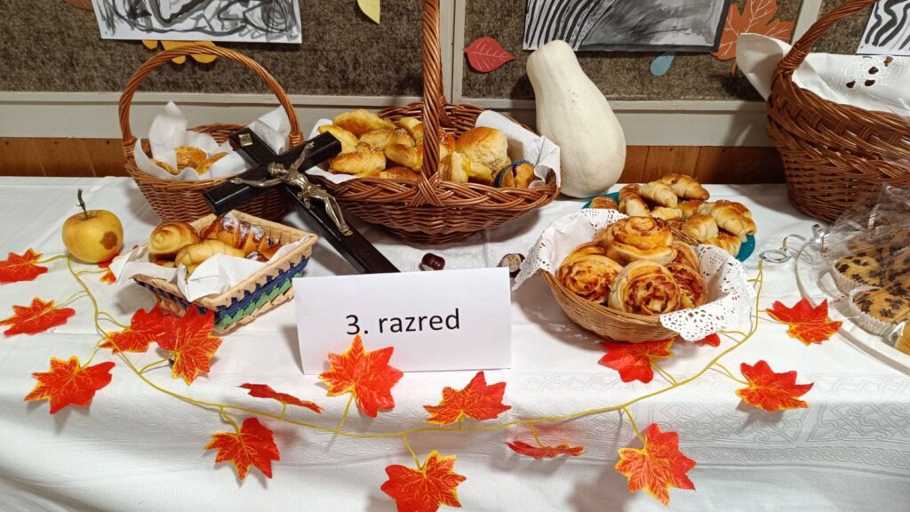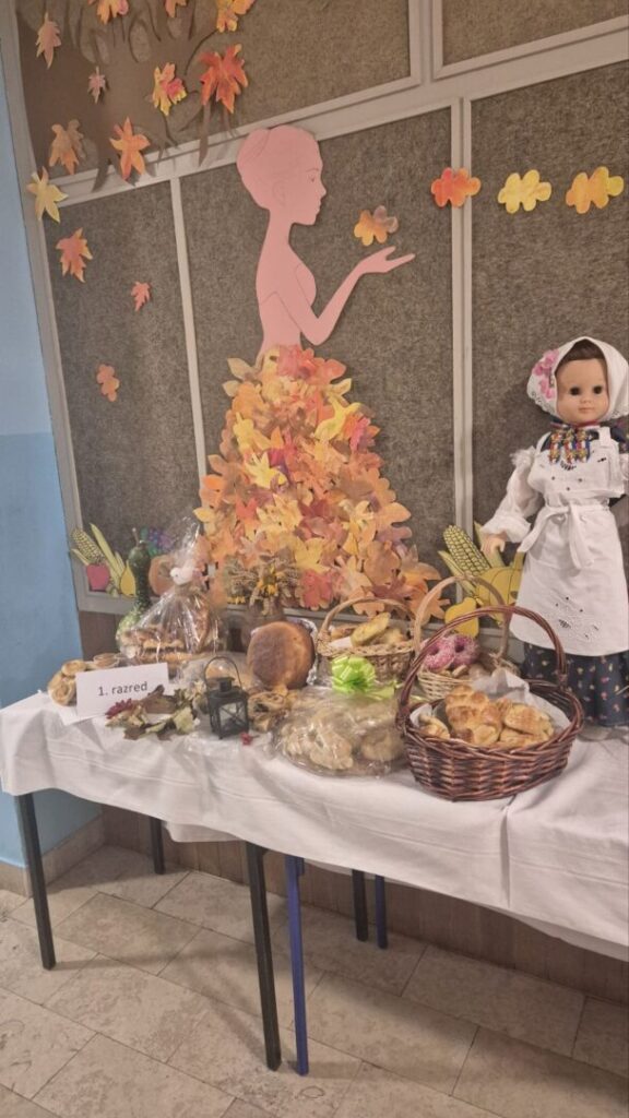 Učenici predmetne i razredne nastave pripremili su bogatu izložbu domaćih pekarskih proizvoda, koja je ispunila školu mirisima svježe pečenih peciva, kruha i kolača. Stolovi su bili ukrašeni plodovima jeseni – žitom, bundevama, kukuruzom i jabukama – stvarajući pravu jesensku čaroliju.