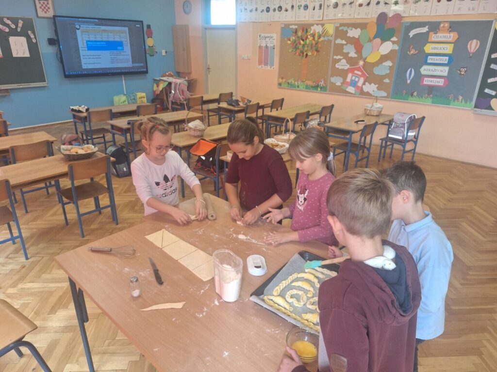Također su, učenici 1. i 2. razreda, s puno truda i veselja izrađivali su “bakine kolače” ipekarska peciva prema starinskim receptima.