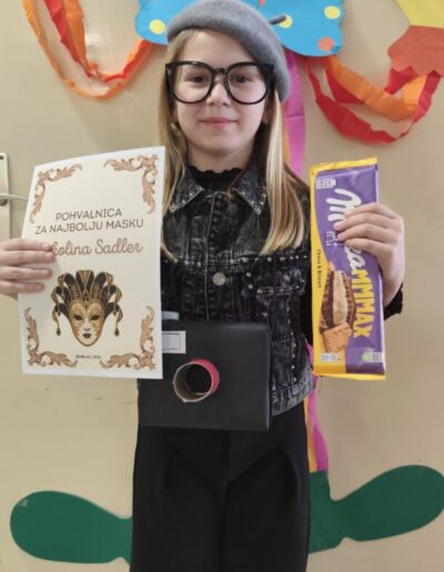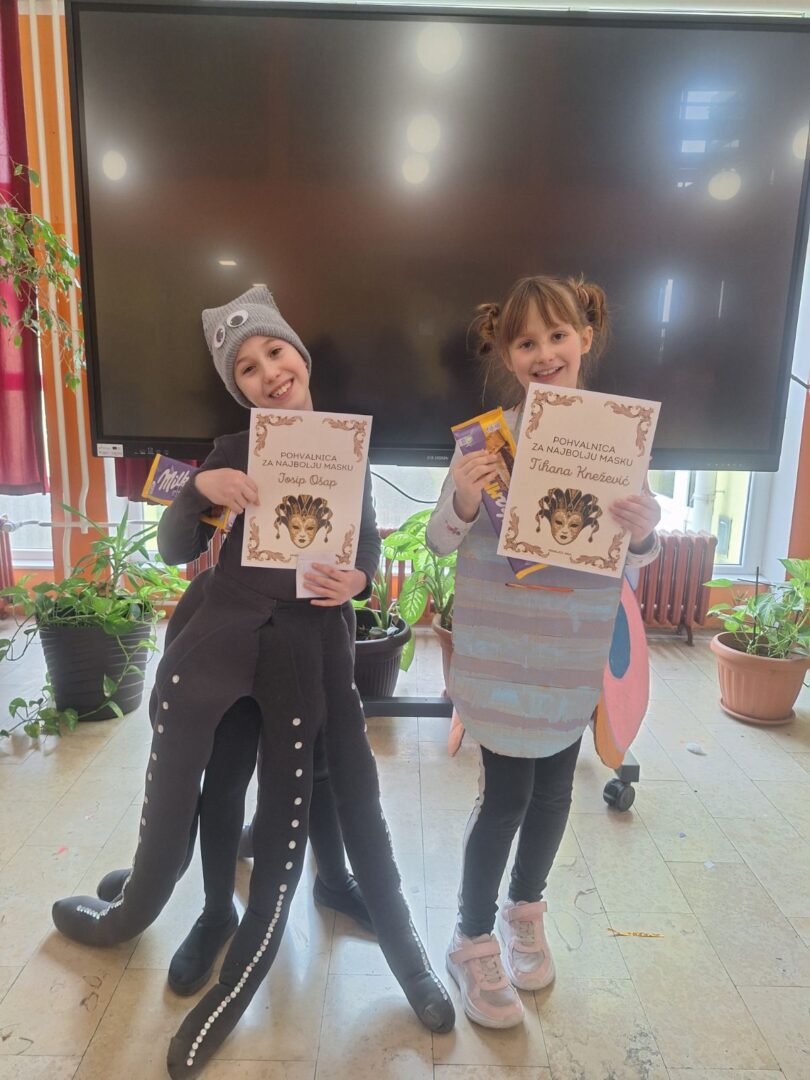 Najkreativniji u razrednoj nastavi bili su: Tihana Knežević i Josip Ošap iz 2. razreda te Nikolina Sadlek iz 3. razreda dok su najbolje pojedinačne maske u predmetnoj nastavi: Katarina Vulinović iz 5. c, Jan Gujaš iz 7. b i Iva Mihaljević, 8. a. Najbolji razred predmetne nastave bio je 6. a koji su se predstavili kao Supertalent. Čestitamo pobjednicima, ali i svima koji su sudjelovali!