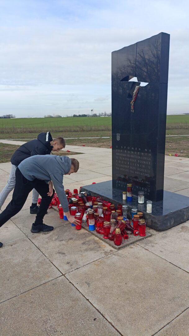 Po dolasku u Vukovar učenici su odslušali predavanje o uzrocima, tijeku i posljedicama Domovinskog rata te Bitke za Vukovar. U prostoru Memorijalnog centra Domovinskog rata Vukovar upoznali su se s oružjem agresora i branitelja.